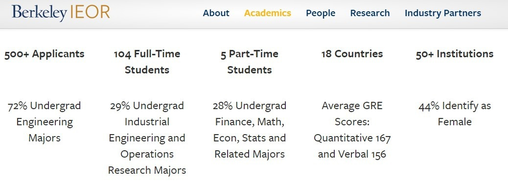 UC Berkeley是美国公立学校中数一数二的名校,地理位置位于加州,无论是气候还是商业环境都很好。UC Berkeley的IEOR在工业工程项目中也一直处于领先位置,项目注重培养学生在OR领域的实际应用能力和leadership skills。