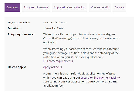 英国大学或海外同等学历的一级或二级以上荣誉学位(2:1,平均60%)。