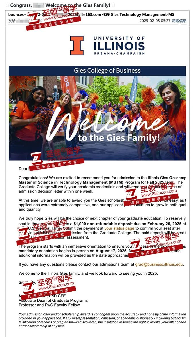 录取结果:伊利诺伊大学香槟分校技术管理硕士录取