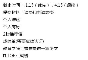 - Master of Education (60 points),即教育学硕士,总共有60个学分,该项目是对TESOL领域之一或者更多的深入学习。它主要是对MA水平进行专业的培训,或者对将来进入博士学习进行学习。如果学生没有从哥伦比亚大学获得MA的TESOL学位,需要弥补一些课程,这个主要是由教授来决定是否要让学生进行弥补。