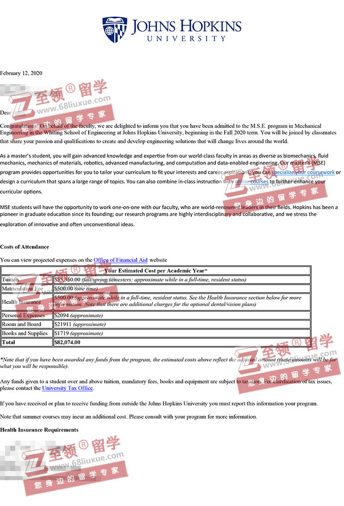 录取结果:JHU,M.S.E. in Mechanical Engineering约翰霍普金斯大学机械工程硕士录取