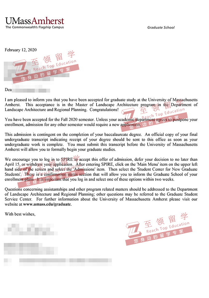 录取结果:University of Massachusetts Amherst,Master of Landscape Architecture马萨诸塞大学安姆斯特分校景观建筑学硕士录取