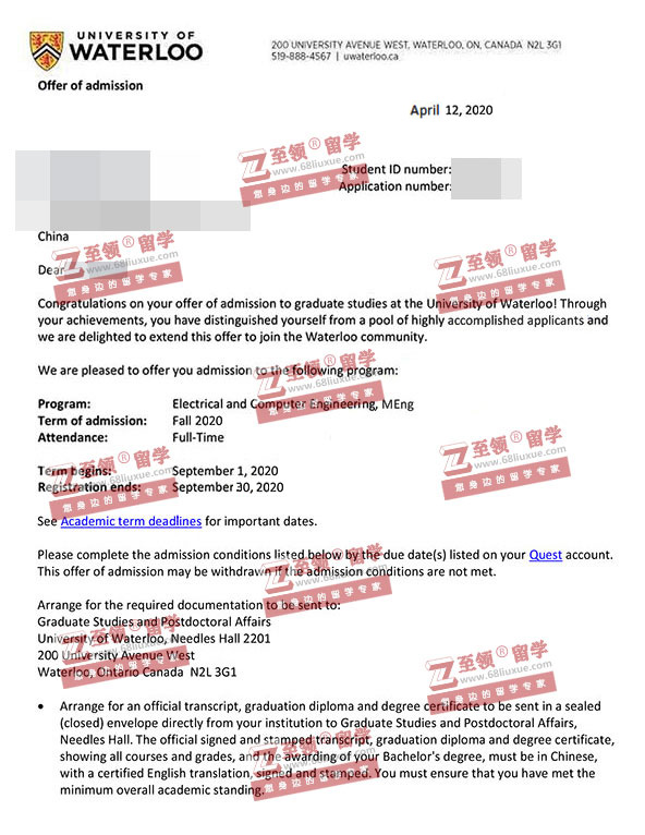录取结果:University of Waterloo,Master of Engineering in Electrical & Computer Engineering滑铁卢大学电子与计算机工程ECE硕士录取